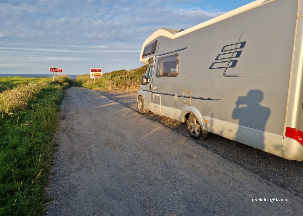 A parking space used by walkers. very quiet but no cars after 6pm. Easy U-turn, there is a pub at the end of the alley. in the mappleton viewing area there is day parking and restrooms, but there are signs that say NO NIGHT PARKING with possible legal action.