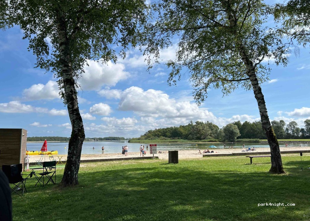 Près du lac, ombragé et largement carré! Aire de jeux pour enfants et plage surveillée! Calme ! Possibilité de dormir sur place en van hauteur 2m sur le parking situé juste à côté.
