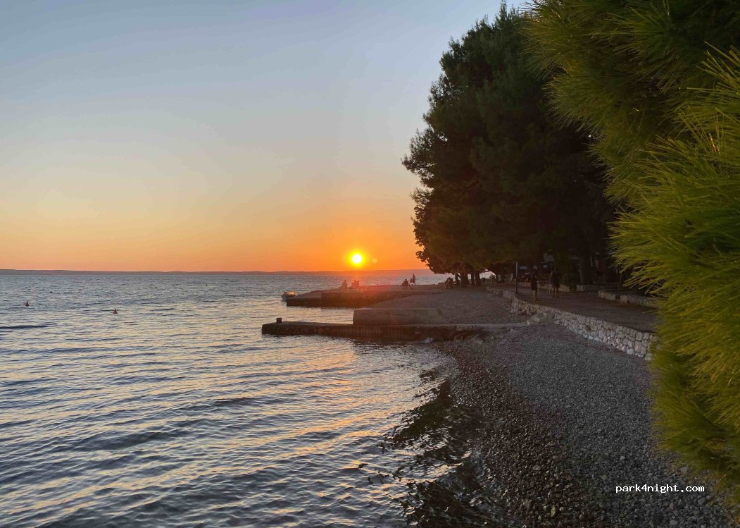Super kamping, część miejsc tuż nad morzem, część w drugiej linii pod drzewami. Kilka sanitariatów (ciepła woda), prąd, dobrze działające wifi, podłączenie do wody na parceli, możliwość opróżnienia czarnej i szarej wody. Na terenie restauracja, obok sklep. Koszt 31EUR (camper+prąd +2 os.dorosłe), 10 EUR dopłata przy morzu. Różne taryfy kosztowe w zależności od dat pobytu.Nie słychać drogi.