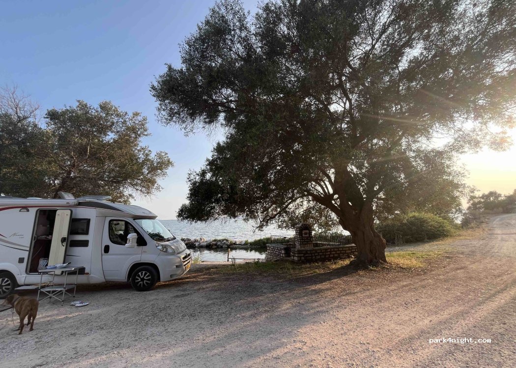 Nice spot for a quiet night, next to the small monastery (closed for renovation to date). a small stony road correct to reach it. clean enough but we had to clean around us. 2 places in the shade under the trees. A few locals at the end of the day come for a walk and to the church.