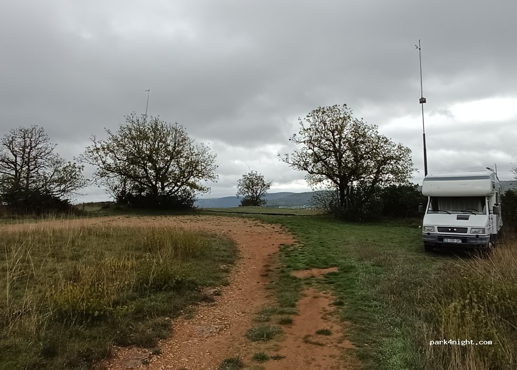 Aire de décollage de vol à voile. nous y avons passé une nuit très tranquille. chemin d accès peut être difficile pour des gros camions ou cc. magnifique vue sur le lot en contrebas.
