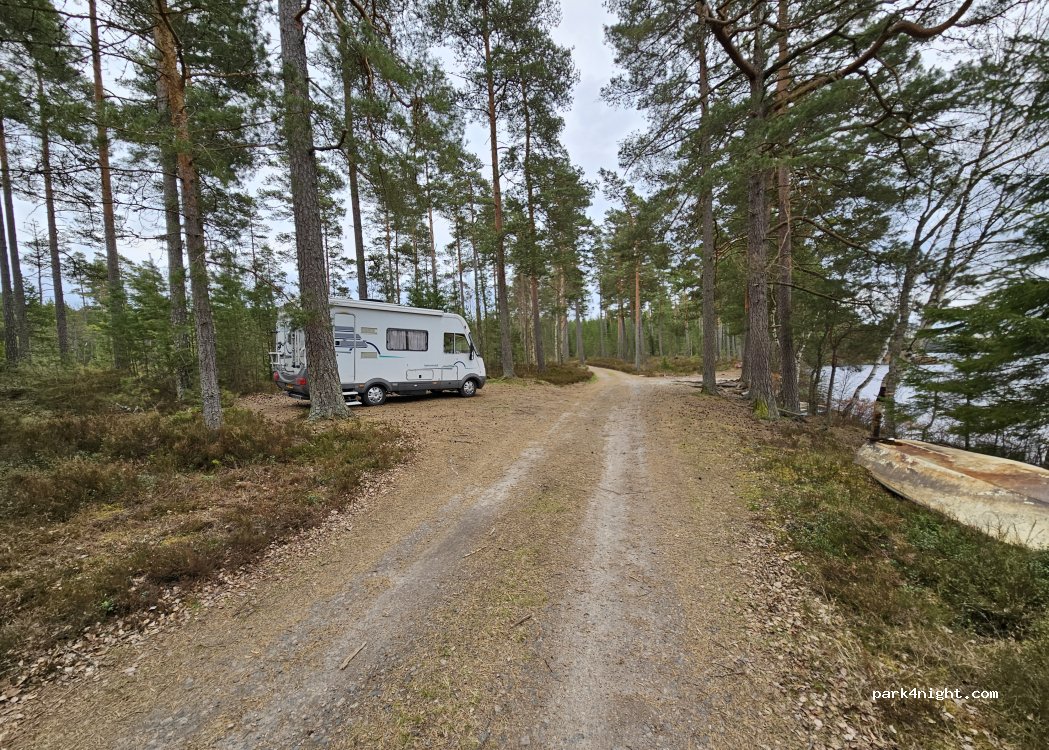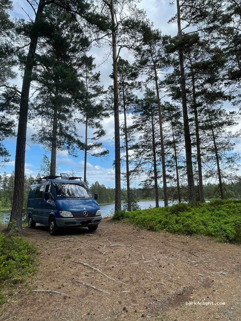 Einer der schönsten Spots auf unserer bisherigen Reise durch Schweden! Man steht allein mitten in der Natur, völlige Ruhe. Nur für kleinere Camper geeignet (z.B. VW Bus). Es gibt eine Wanderung um die Seen (ca. 12km) und einige Sandstrände zum Baden (max. 15min Fußweg). Der See direkt am Platz ist leider zum Baden nicht sehr geeignet.. Eine Feuerstelle gibt es auch.