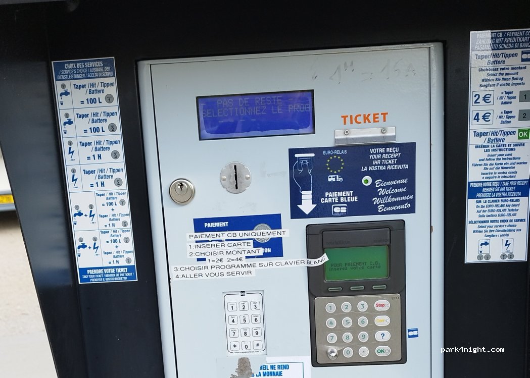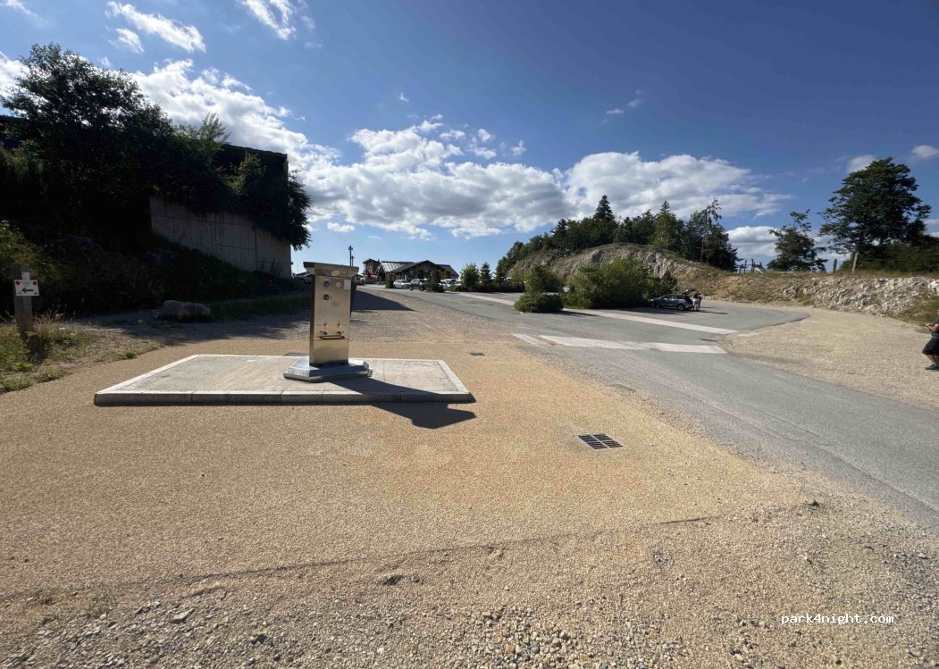 nous n'avons pas dormi mais le parking est grand, beaucoup d'emplacements dont certains bien plats. Nous avons pu uniquement vider les eaux noires, le reste ne fonctionnait pas. Station très sympa pour une belle balade sur les sommets.