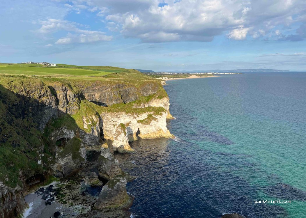 Zona de parking a un lado de la carretera. Sin servicios. Con vistas preciosas al castillo de Dunluce y a White Rocks Beach. Mesas de picnic. A un paso de la Calzada de los Gigantes