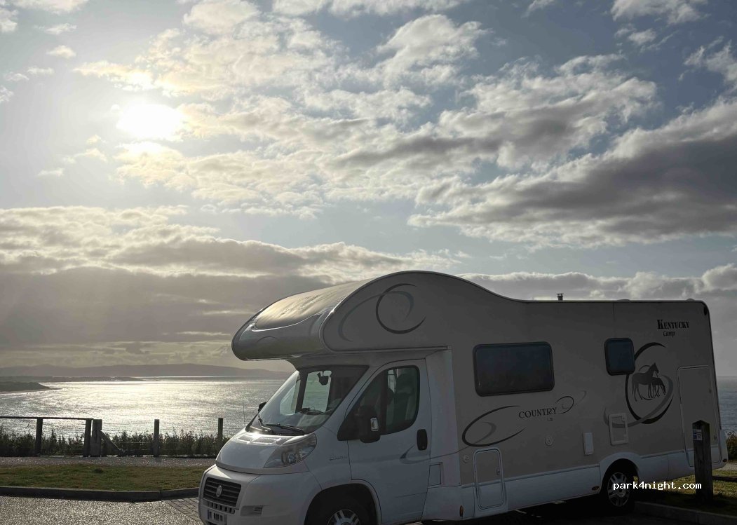 Lovely views and plenty of parking spaces. Close to Portrush town and local tourist sights. Bins in the car park and a local ice cream van during the day. Quiet car park in the evening but very open to the elements.