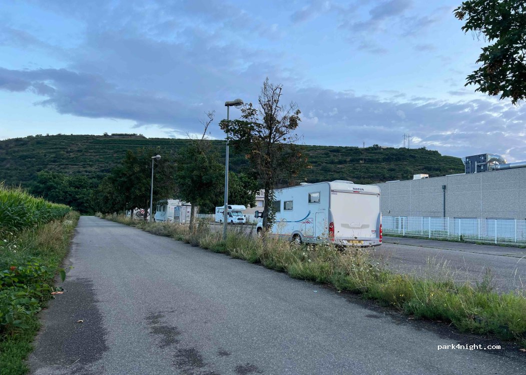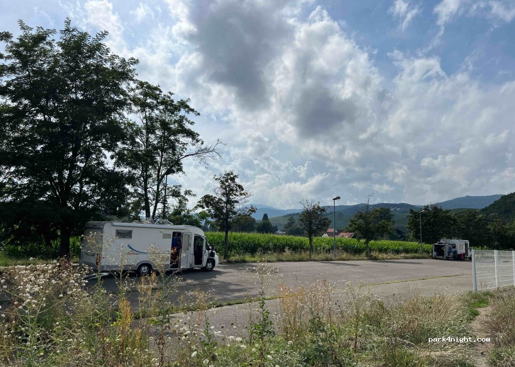 Good spot for a quiet night during the school holidays, only us in the car park. We also left the van here whilst exploring Colmar for the day and was perfect. Very peaceful, only a few cyclist and dog walkers passed by. Vineyards and corn fields surrounding the area with mountains as a nice backdrop. Be aware you can hear the train pass by in the early morning. :)