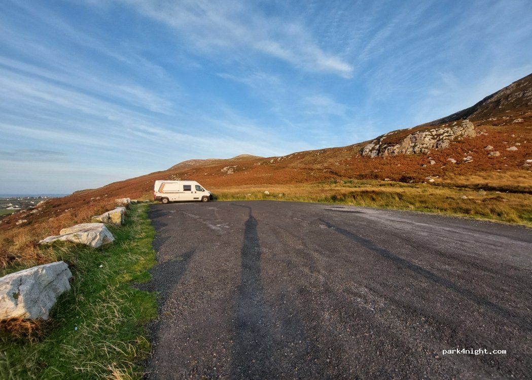 Très beau site pour passer la nuit avec vue sur la plaine et la mer. belle petite route en arrivant du gap of Mamore. Nuit tranquille à 3 camping cars et 2 Vans