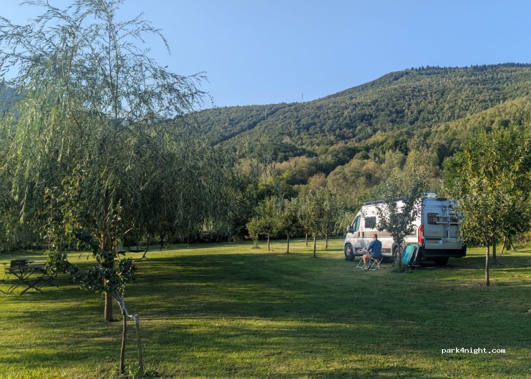 We spent 2 nights with a rooftop tent and a floor tent, the owner is very friendly and allowed us to sit wherever we wanted and recommend us great places. There is a grill, 2 toilets and 2 showers, a fireplace - everything you need for a good weekend. Will come back for sure