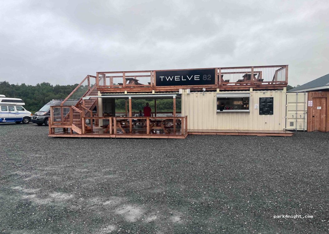 Le stationnement tout juste derrière l eglise, c est le centre d information touristique qui m’a dit que l on avait le droit. Au lieu de se faire à souper, nous avons encourager le casse croute ‘twelve 82’’ , delicieux!