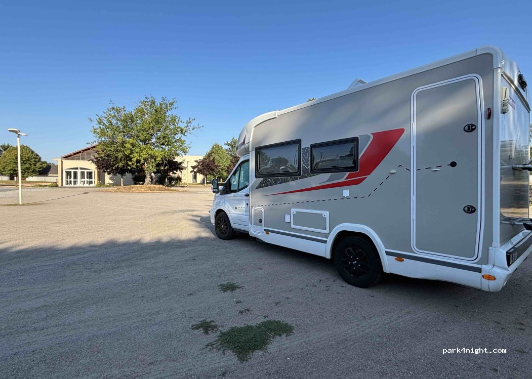 Parking de la salle des fêtes accessible . Sympa , calme , sécurisé et propre ( poubelles sur place ). Nous avons passé une très bonne nuit. Merci à la commune de permettre aux cc de stationner !