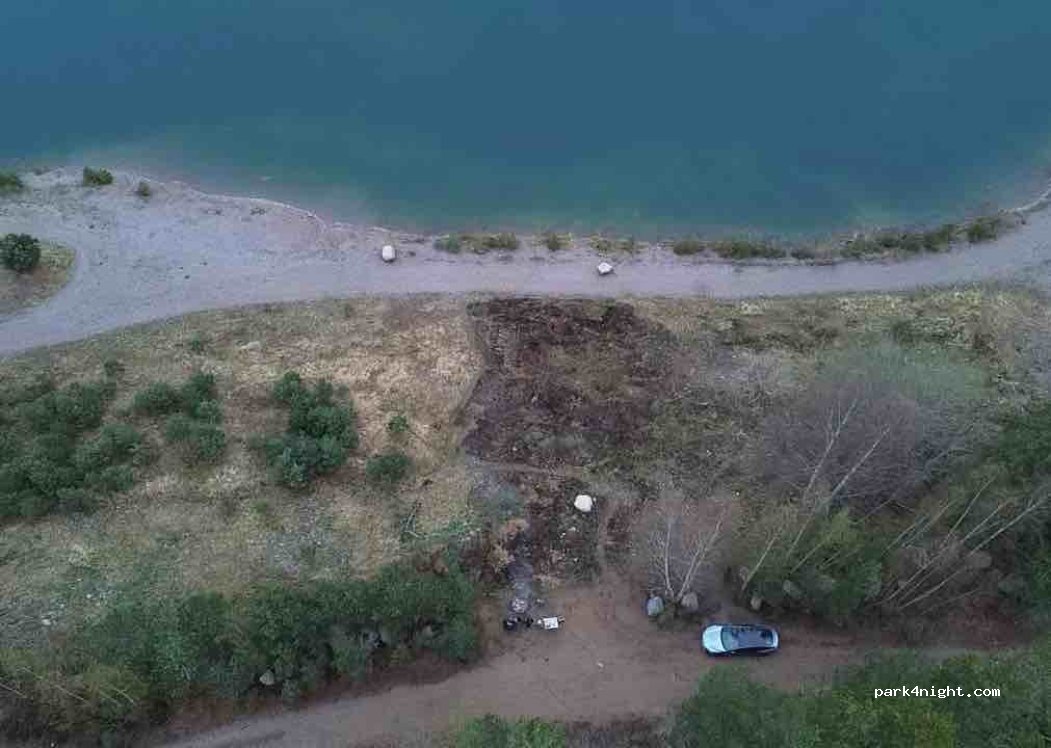 19/09/21: Camping verboten! Weiterer Platz oberhalb an einem künstlichen See (Kiesgrube) mit direktem Blick auf den See. Etwa 100 m von der Straße weg, ruhig.