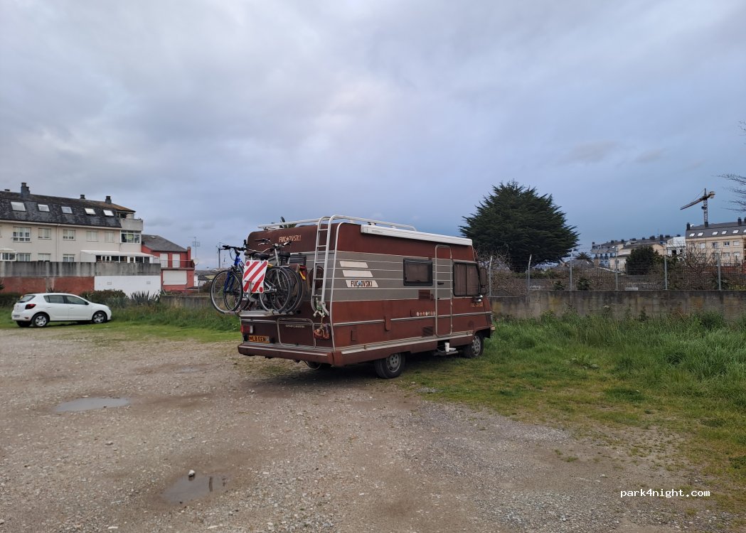 good level parking on the gravel . plenty if bins, just behind the town. ideal for visiting Ribadeo .day or night . very quiet
