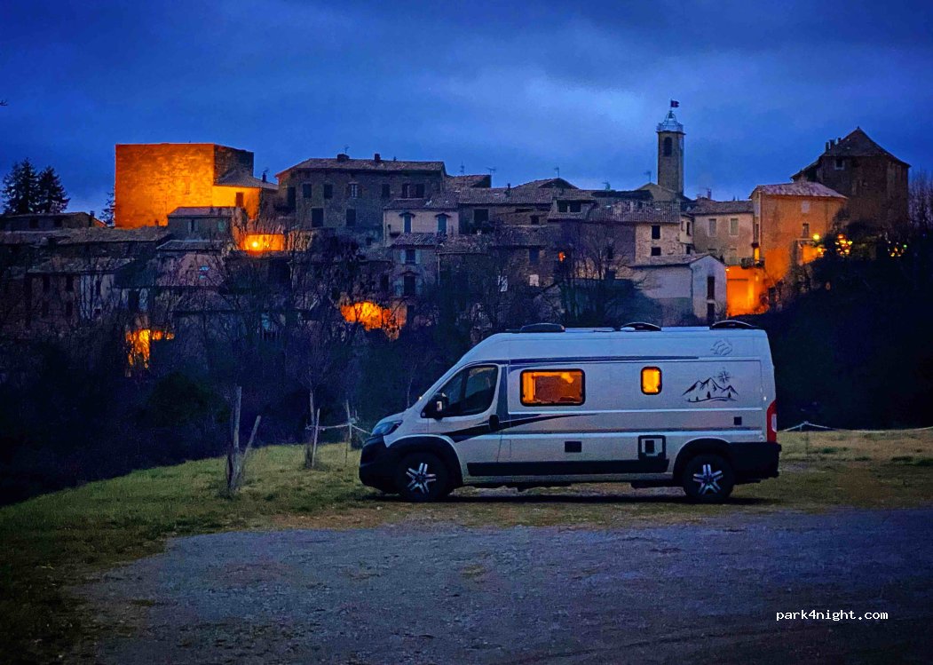 Très bien pour passer la journée et la nuit. Beau village médiéval avec des ruelles à découvrir, départ de randonnées. Seul bémol, pas mal de circulation sur cette petite route. Merci à la municipalité d'accepter les camping-cars sur ce parking.