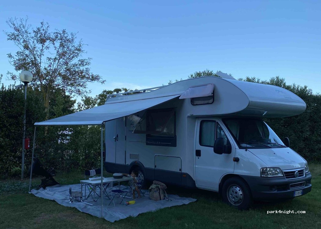 Area di sosta tranquilla e ben tenuta. Gestori molto carini. Comodo servizio navetta gratuito per andare al mare e possibilità di prendere bici in prestito. Solo due pecche da segnalare: wc alla turca e l'enorme quantità di zanzare presenti la sera