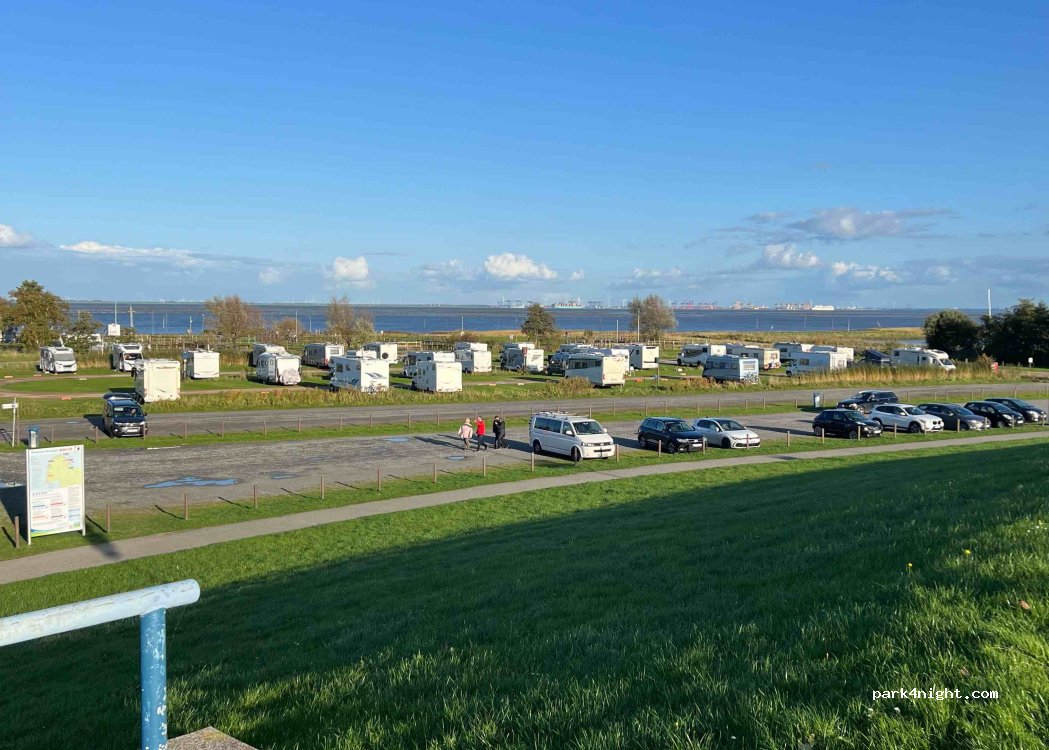 Toller einfacher Stellplatz. 15 Euro (ohne Kurtaxe u Strom) sind völlig ok zum übernachten. Wir hatten aus dem Fenster raus sogar Sicht aufs Watt und Bremerhaven. Ich würde auf jeden Fall wieder kommen. Stellplätze waren auch noch genug da.