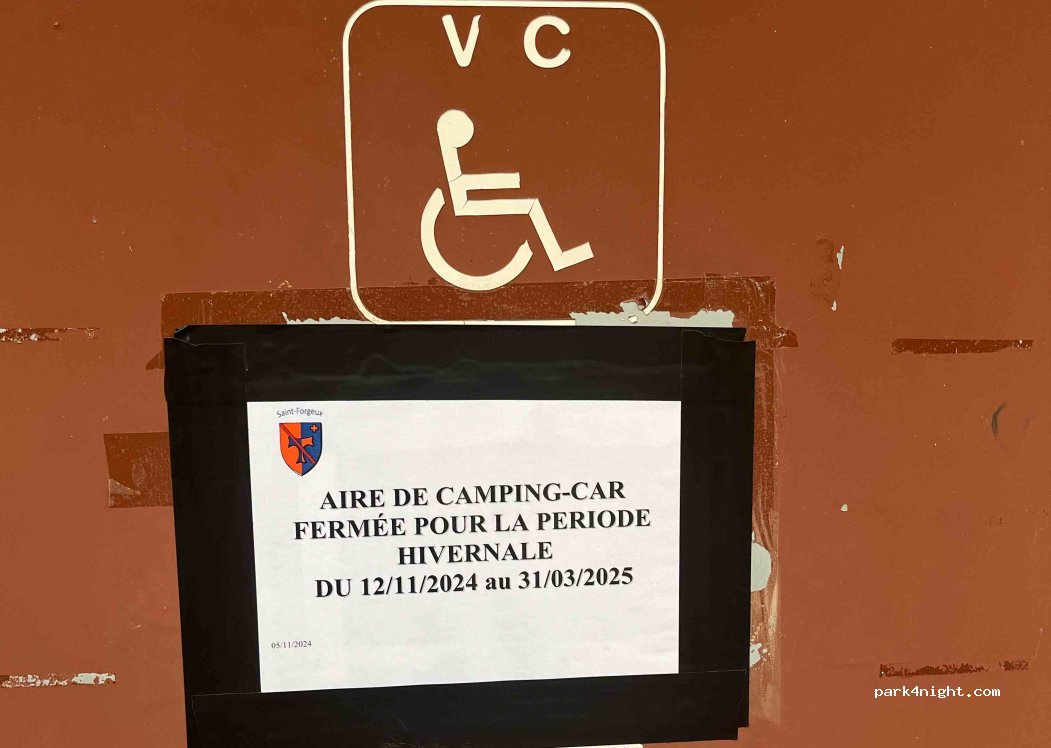 Merci à la communauté de saint Forgeux pour ce Park complètement gratuit avec eau et électricité, mais dommage que les chasseurs avec leur soit disant « amical » soient irrespectueux envers les Cc, ils ont but ils ont hurlé jusqu’à 3h du matin et nous on insulter et klaxonner gratuitement en partant !! Et réveil à 8h tapantes avec les agents communaux. Pas reposant nuit pénible.