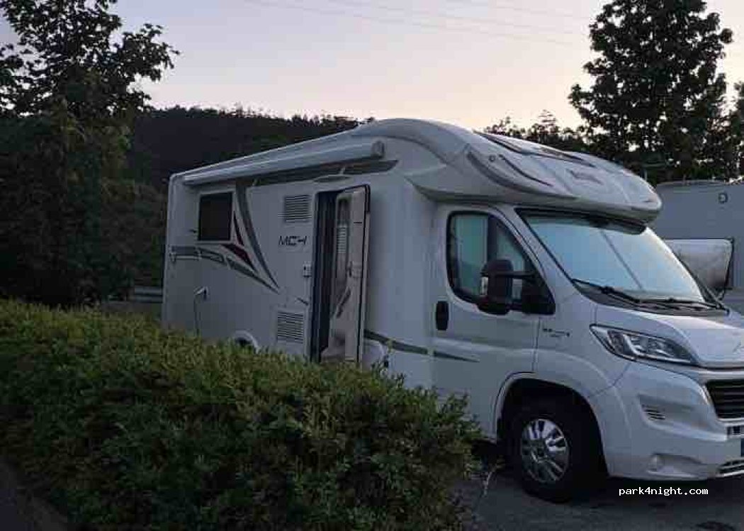 Situated about a 10 minute walk from the village centre with cafes, restaurants and a Lidl. There is a self service laundry at a 5 minute walk which was very useful. All pitches need blocks except for one which were on tarmac forming part of a mixed car park, however these are designated spaces. It was well lit at night, felt very secure and a quiet nights sleep. All services are provided including free electric which brings me to the only negative. Chances of connecting to electric were nil, there were wires everywhere and we came to the conclusion most motorhomes and a caravan are virtually resident leaving few spaces for the visitors.