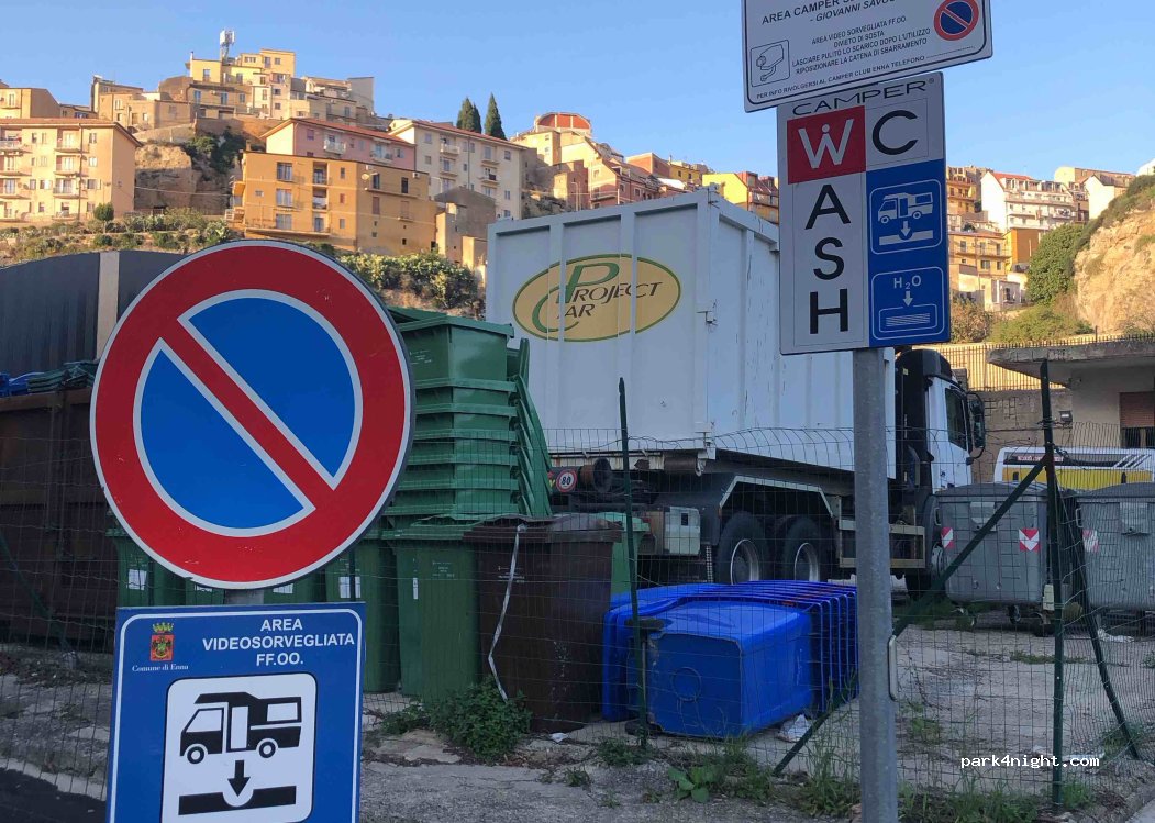 5 stelle per ringraziare il Comune di Enna per l'iniziativa. Ottima per fare carico e scarico (fra l'altro gratuitamente), comodissima per visitare la città grazie alla navetta che parte dal vicino parcheggio scambiatore (200 m più in alto ). Per quanto riguarda il dormire non mi è sembrato un bel posto (non mi sono fermato per la notte), ma non si può avere tutto.