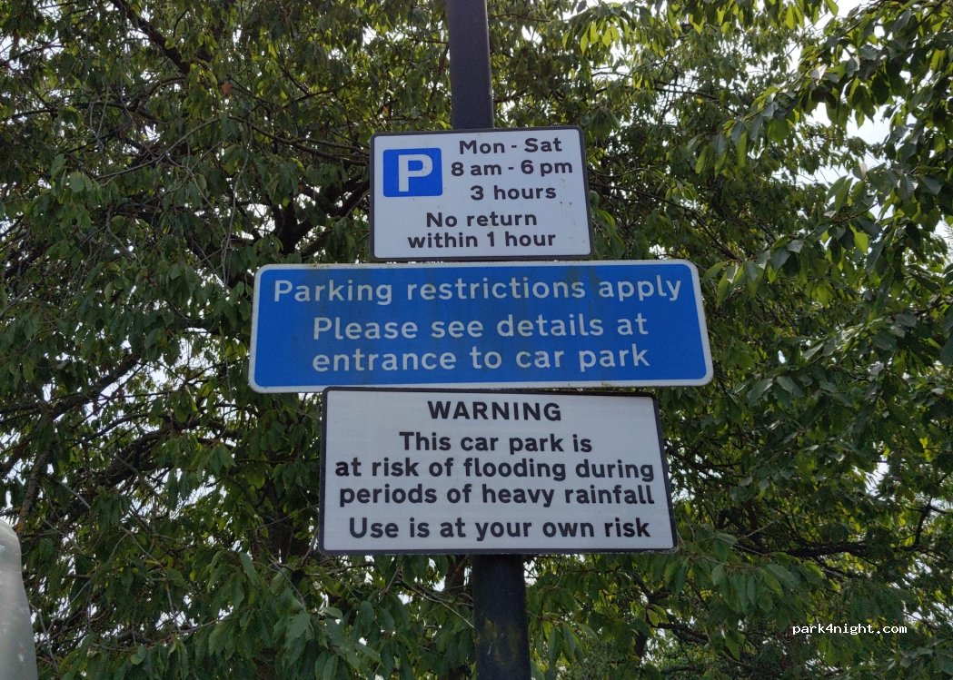 Parking d'environ 30 places. Toilettes attenantes. 20 pence. J'étais le seul campeur sur place pour la nuit. Bien que les panneaux indiquent des restrictions de stationnement (voir détails à l'entrée), il n'y en avait aucune. J'ai estimé la hauteur de la barrière, car elle n'était pas indiquée.