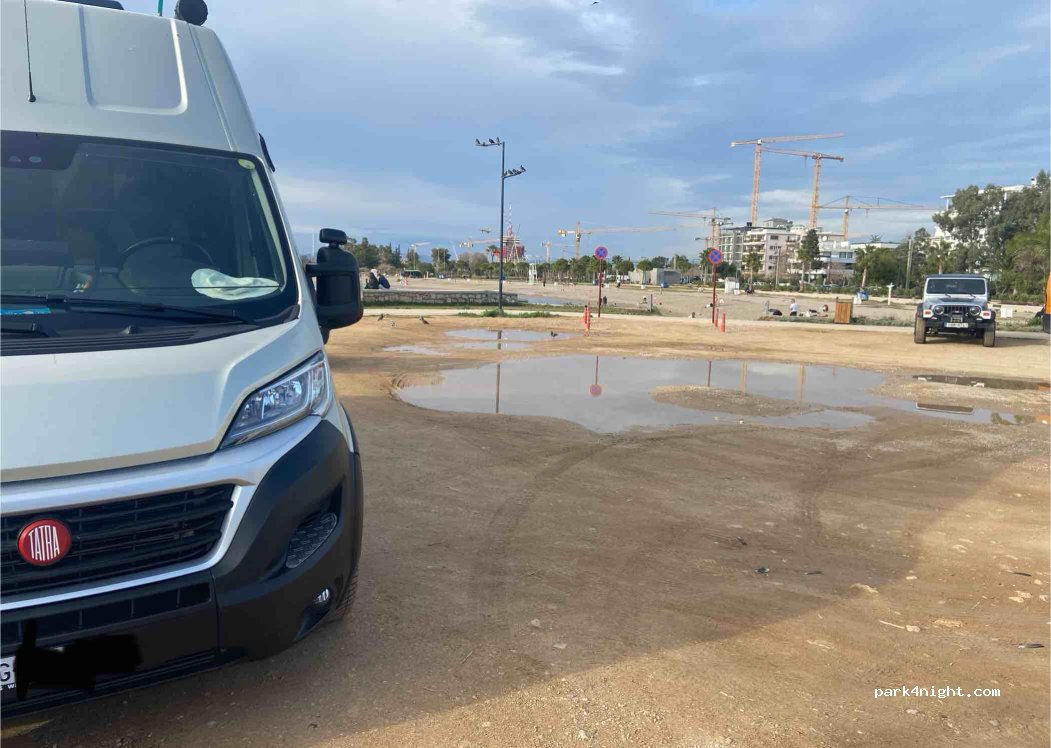 Ce parking est situé en bord de plage, ce qui en fait un lieu de passage pour les locaux (de jour comme de nuit, donc plus ou moins calme). accès au tram à 200m (si vous prenez un ticket journalier, il vous donne également accès au métro d'Athènes).Bars et restaurants à proximité. douches extérieures sur la plage. Pas de services.