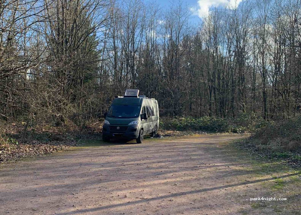 Forest car park on the Mainzer Berg at the Friends of Nature House "Auf der Moret". Very quiet and located in the middle of the forest. No infrastructure but lots of green. At the Naturfreundehaus you can eat well when it is open.