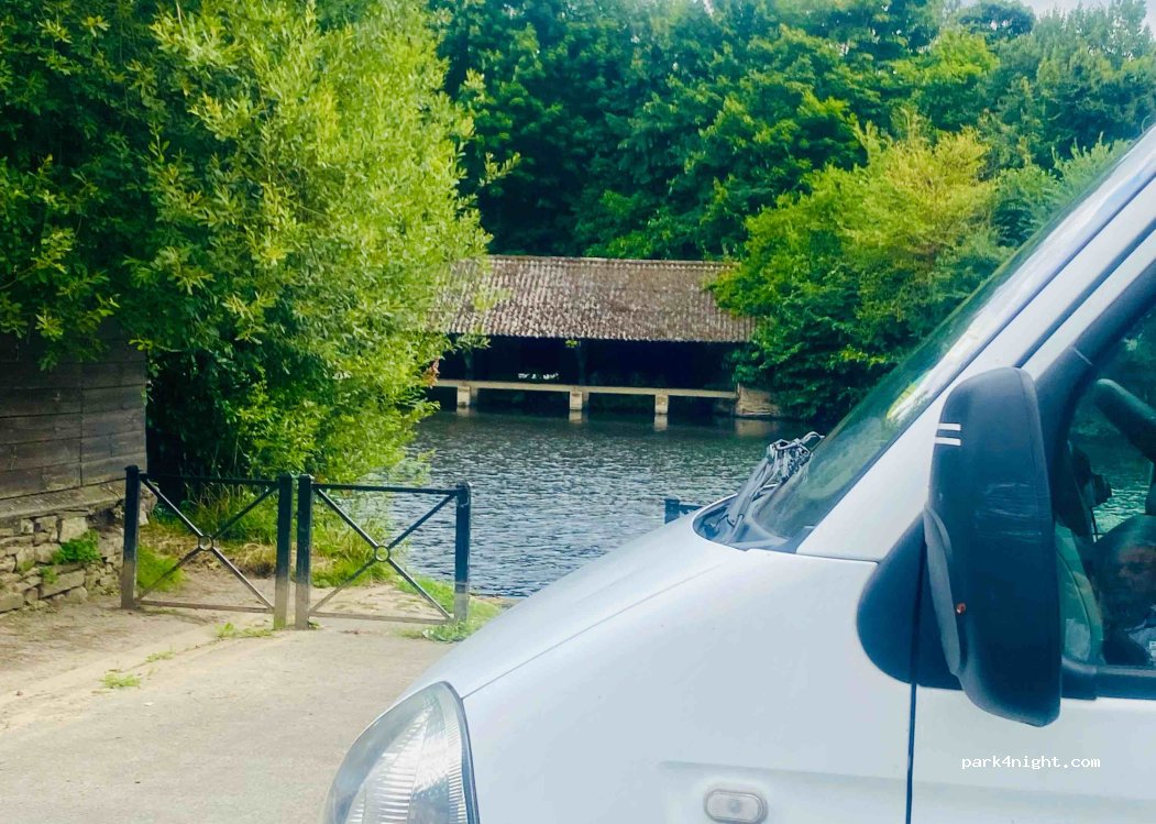 Bon emplacement au calme dans une impasse bon pour une nuit,demi tour délicat (nous avons un ducato L3 H2).belle vue sur l’Orne