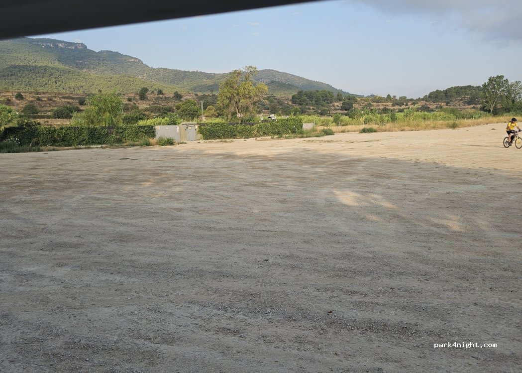 Aparcament de sorra molt gran. Perfecte per visitar Montblanc. No hi hem dormit però sembla tranquil.