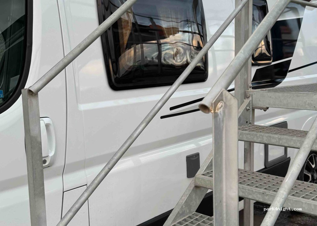 No tiene ninguna zona de servicios para autocaravanas. Es una gasolinera con zona de limpieza para coches y venta de bombonas de gas butano y propano.
