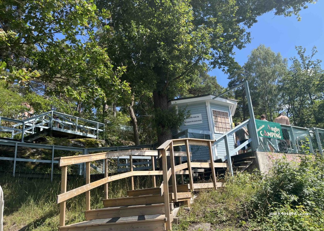 Camping un peu en vrac, emplacements pas tous plats et inégaux. Accès à une plage sympa. Pratique pour visiter Stockholm.