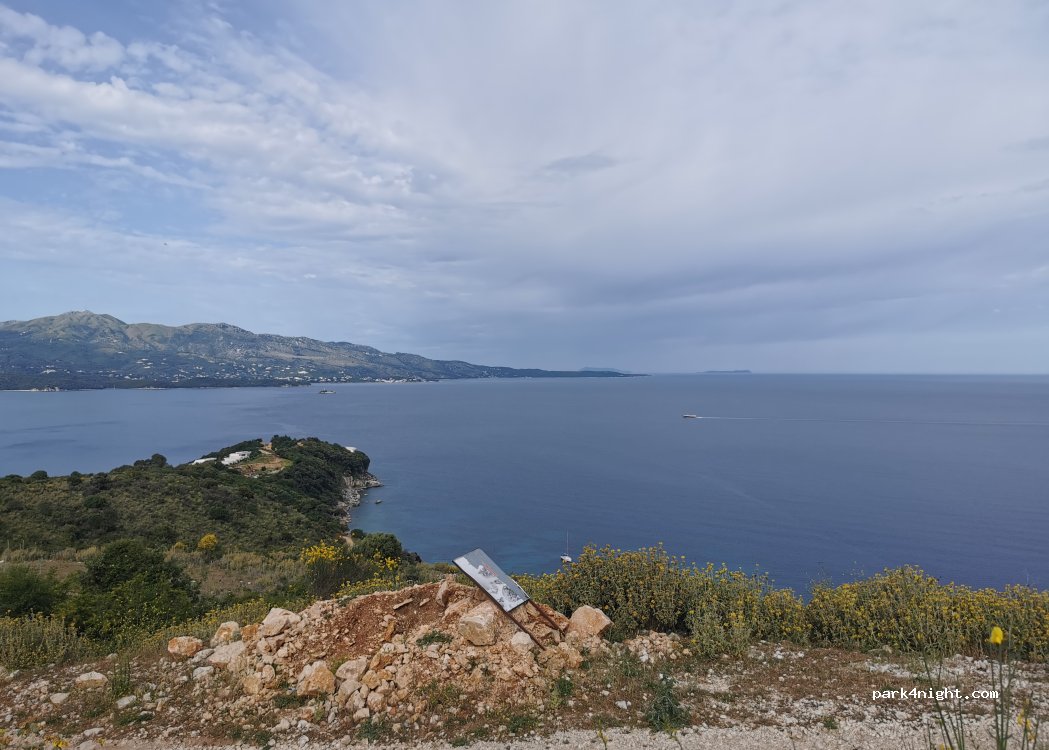 Plac z ładnym widokiem na Korfu i zachodzące słońce. Łatwy dojazd, lokalni pasterze blokują wjazd dużymi kamieniami. Pasące się bydło obok