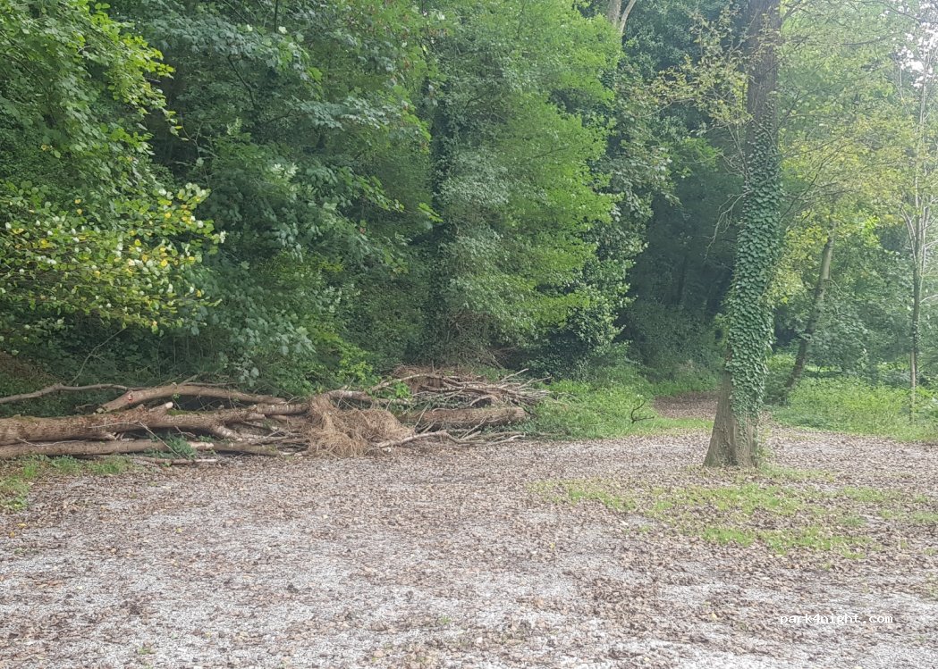 Nice and quiet place. You can hear some water in the environment. In the early morning some fishermen parked their cars to go fishing a bit further away. Also a place that gets used for people who let their dogs out.