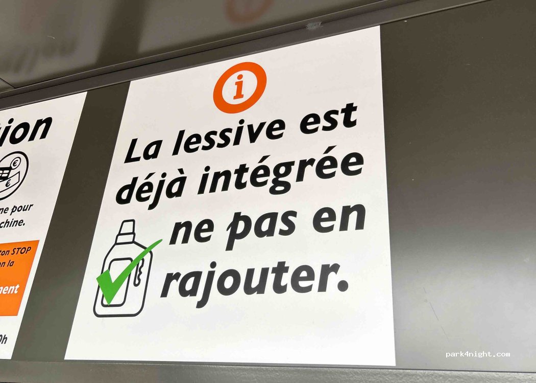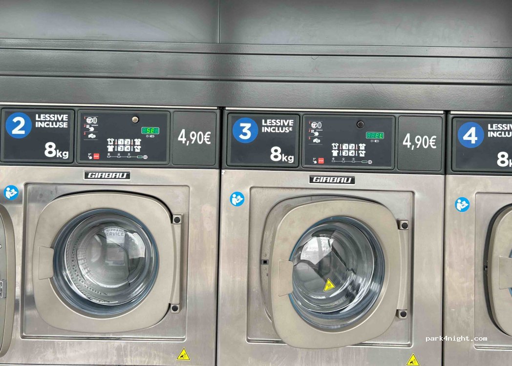 Great laundry service, pay with credit card, directly on E. Leclerc parking area - easy to park your motorhome + easy place for restocking groceries!