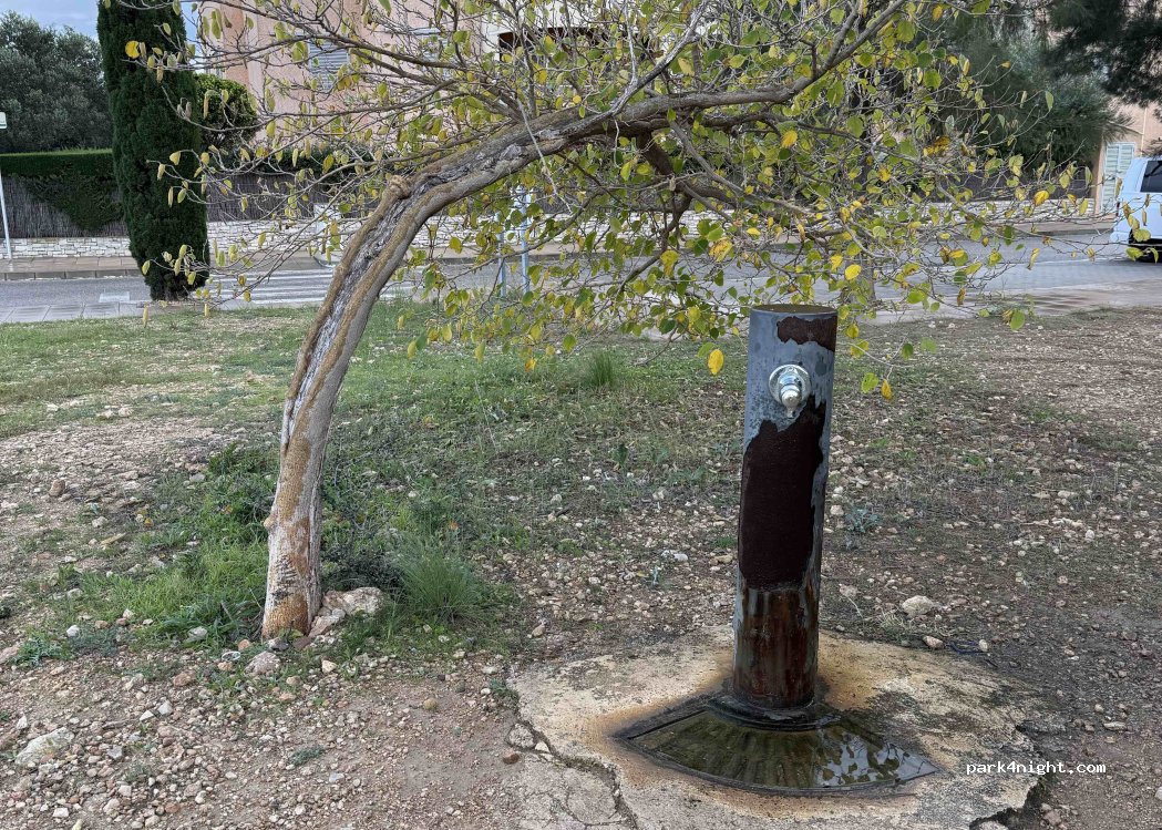Unbefestigter Parkplatz in einer sehr ruhigen, ebenen Anlage mit einem nahegelegenen Springbrunnen. Es gibt keinen Schatten und ist daher ideal zum Übernachten.