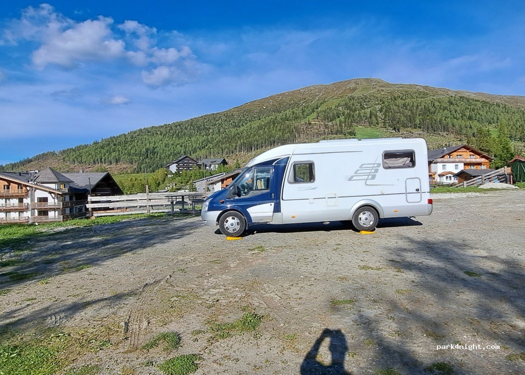 Grote parkeerplaats met een mooi uitzicht. Naast appartementhaus Speckalm loopt een weggetje wat je in moet rijden dan kom je bij de privé camper parkeerplaats. Natuurlijk is het wel zo netjes om je te melden bij de pizzaria Larchenstadl en wat te consumeren als tegenprestatie.