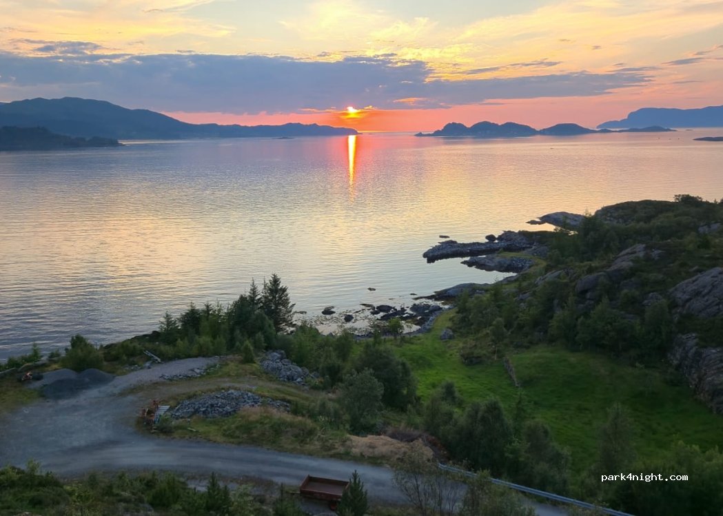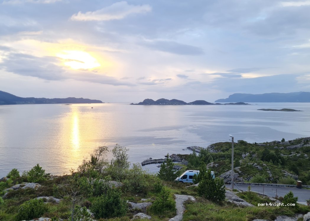 Bomben Sicht auf die Insel Silda und den Leuchtturm Skogenes fyr. Morgens kleine Wanderung zum Aussichtspunkt (Wanderinfo am Parkplatz) mit herrlichem Ausblick. 2 WoMo‘s können bequem auf dem Platz annähernd waagerecht stehen. Super als Schlafplatz für die Durchreise.