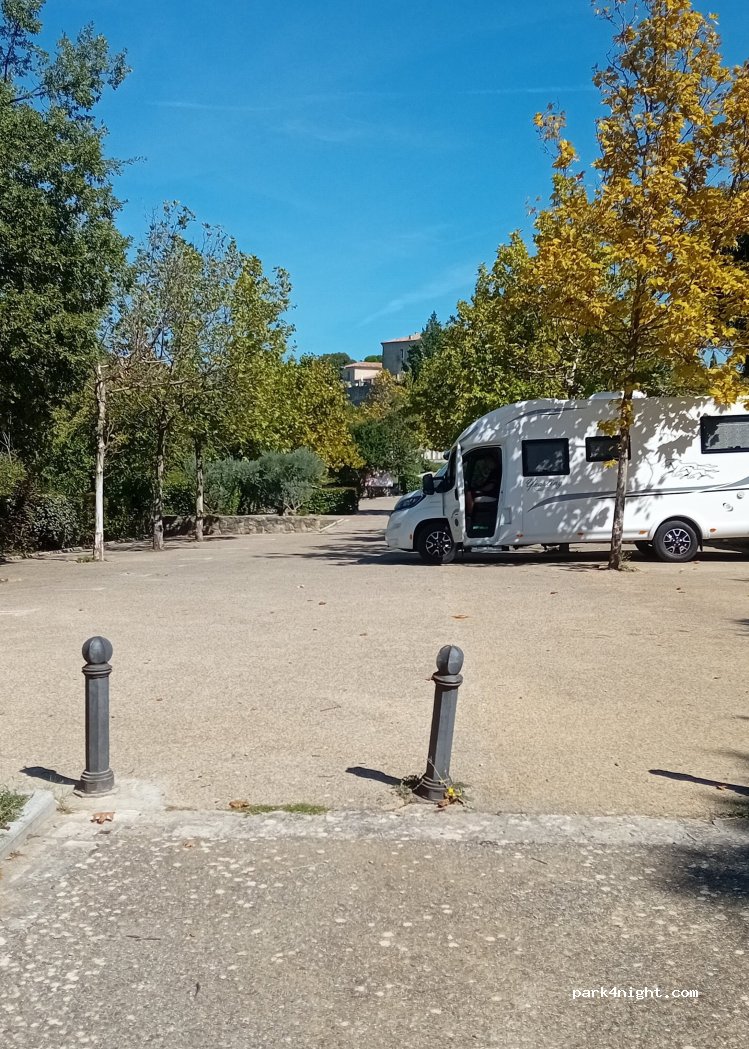 je recommande la commune à mis à disposition ce parking pour 48h max.gratuit eau ', WC ,table pour se restaurer ,parc pour les enfants et les emplacement au propre accès au centre ville possible à pied très joli village perché ou on peut prendre à boire ou manger au nouveau bistrot très accueillant je recommande