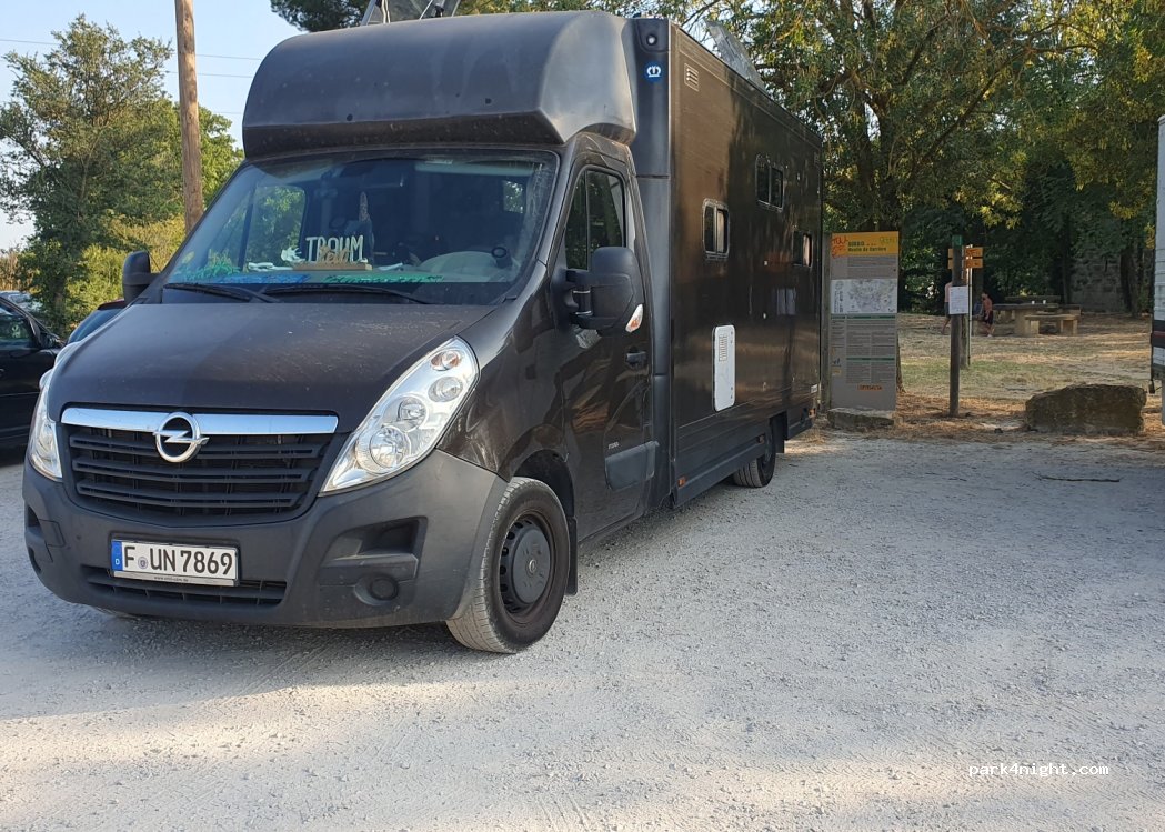 Sehr ebener Schotterplatz nicht weit von der Autobahn entfernt. Autos fahren direkt vorbei aber nachts sehr ruhig. Für eine Nacht auf der Durchreise perfekt.