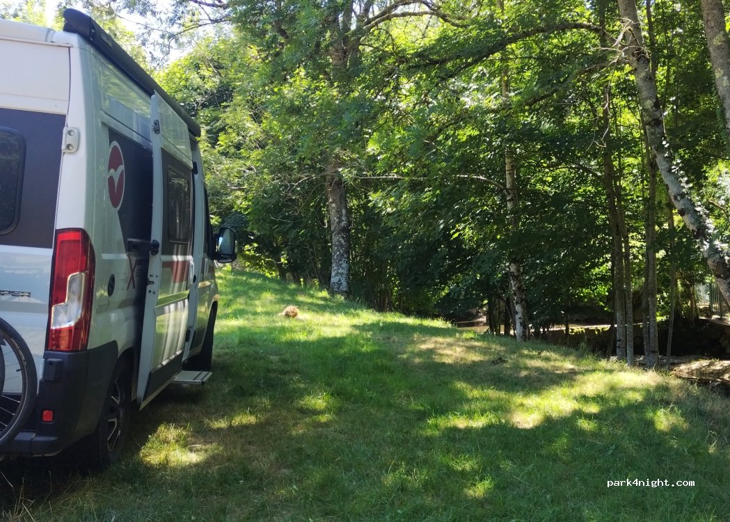 Lieu très sympa, accessible en van. Nuit très agréable, au bord de la rivière, la route nous surplombant est très très peu passante (rien entendu de la nuit). Jeu d’enfant à proximité. Un robinet d’eau est à disposition. Attention, présence de crotte de chèvre.