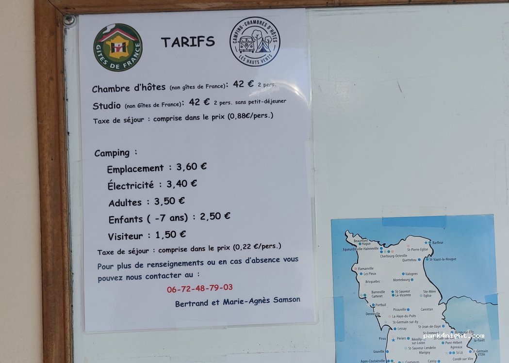 Très bon accueil, beaux emplacements et bien délimités, sanitaire simple et propre. Tarif emplacement 3.60 € Électricité 3.40 € Adulte 3.50 € Enfant - de 7 ans 2.50 € La taxe de séjour est comprise dans le prix. Notre séjour 1 emplacement, 2 adultes, 1 chien, branchement électrique, la taxe de séjour pour 14 € par jour