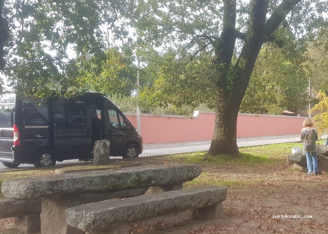 Paramos aquí para desayunar, totalmente solos, al lado de un convento, para dormir también valdría, equipado con baños (bastante limpios la verdad), grifo en la zona de mesas y un pequeño parque infantil, perfecto para una parada, ah y en el baño dispones de enchufe que para los que viajamos en camper es toda una ayuda