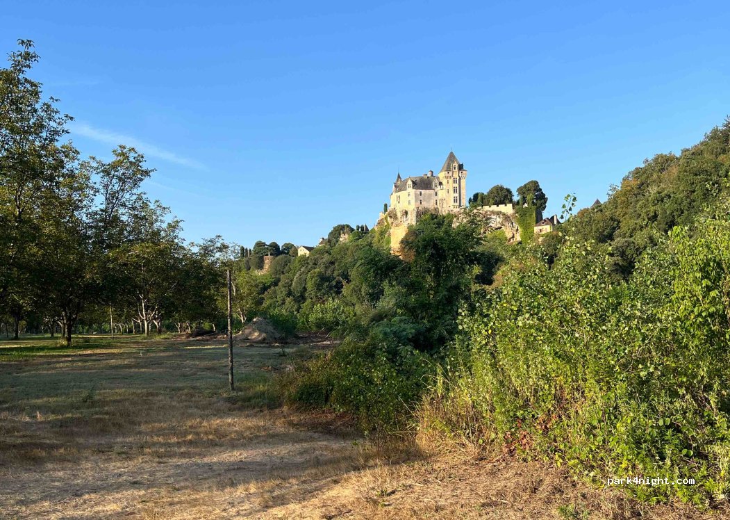 Well go to the end of the dirt road / producer with farm tour / parking on grass shaded / possibility water and drain / walk on the Dordogne.