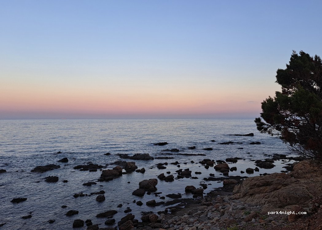 Nice place for 2-4 vehicles. The driveway for about 1km over a narrow partly washed-out gravel road. Bushes and shrubs are near the path. We with Renault Traffic 2017 had contact with the bushes on both sides at the same time. Slight scratches not excluded. Arrived at the site, direct view of the sea and a small bay next door. Unfortunately some rubbish. (Please keep the place clean!) In the evening a farmer went with his dog, he didn't say anything and just greeted. Quiet and lonely night :)