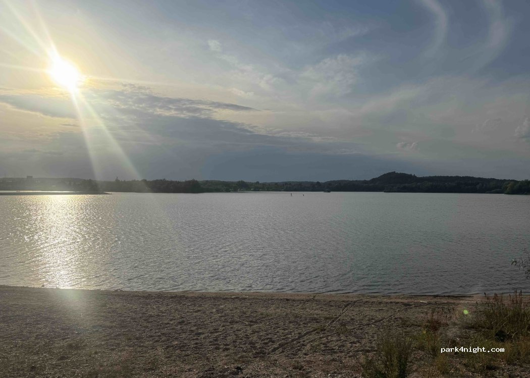 Terminamos quedándonos aquí una noche de camino a Wroclaw. Debe ingresar a las instalaciones de wakeboard y pasar, luego manténgase a la izquierda. Si lloviera mucho, no recomendaría el lugar con la autocaravana... El suelo es muy arenoso. De lo contrario, un lago totalmente hermoso donde se encontraban algunos lugareños. Por supuesto que hay basura aquí, como es habitual en Polonia. Sigue siendo un lugar agradable y también fuimos a nadar.