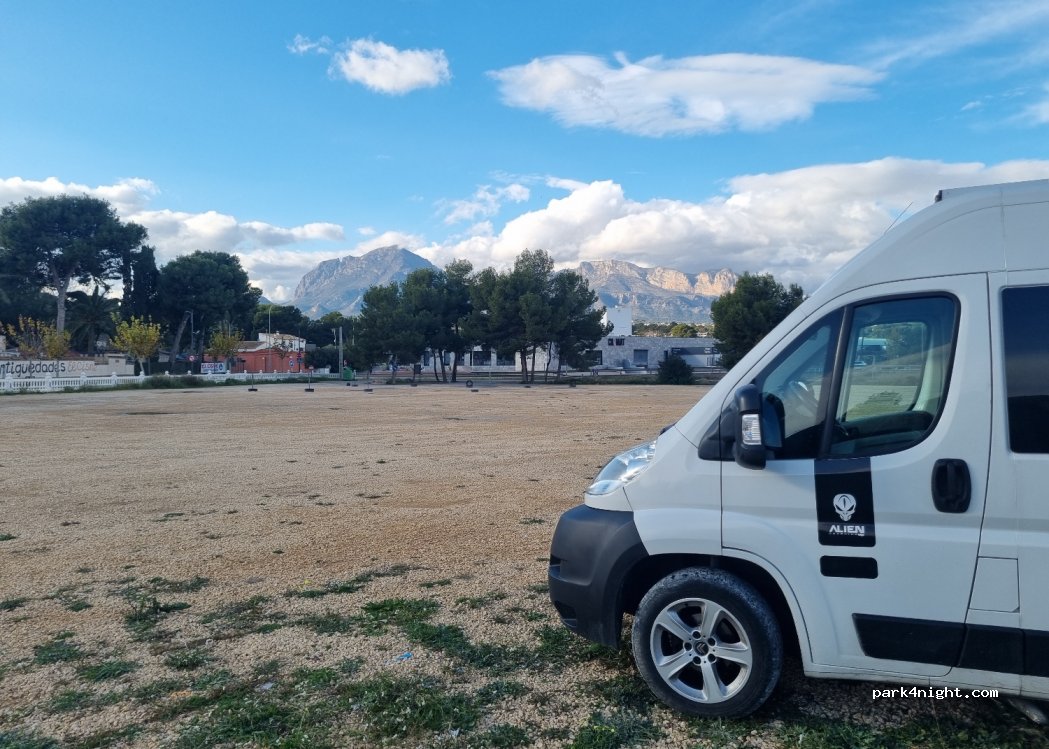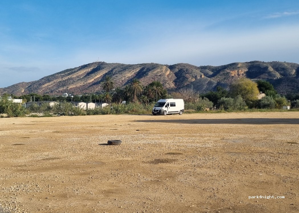 Огромная ровная площадка рядом с кемпингом. Места очень много, в дальнем углу парковки лежат колёса, видать приезжают из автошколы учиться водить.