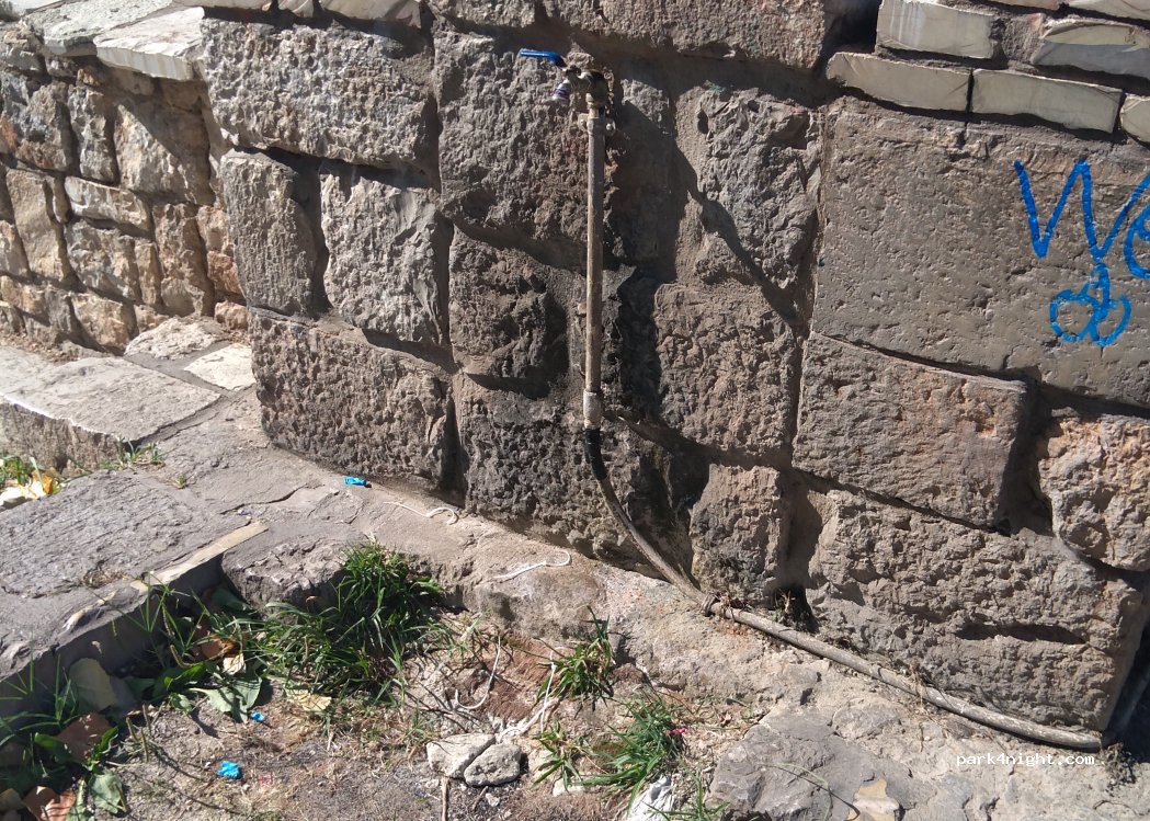Robinet d'eau directement sur le terrain de sport. Vous pouvez vous garer dans la rue pour faire le plein.