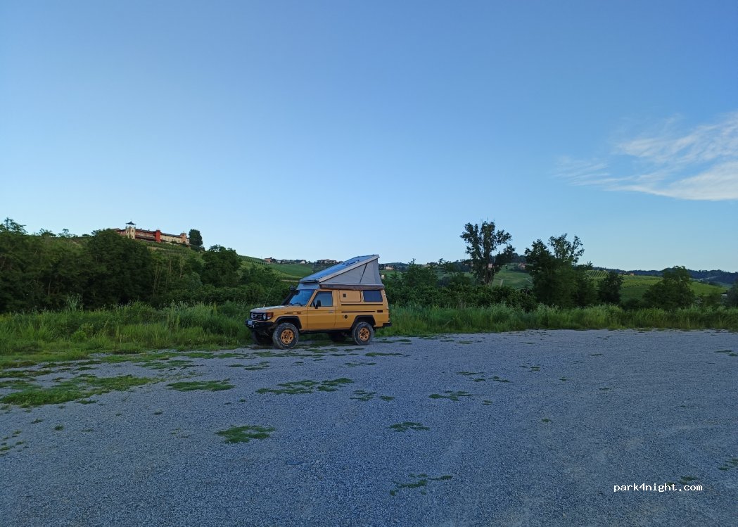 Ampio parcheggio sterrato, sulla strada poco trafficata, a 2 km da Barolo.