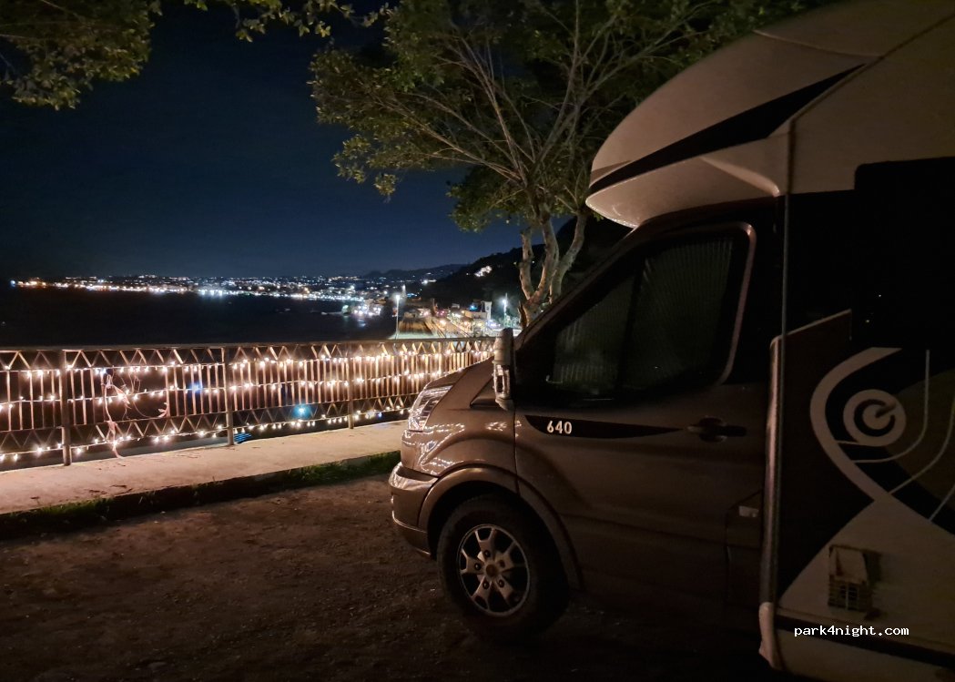 C'est un repère pour camping-car. Le parking a beaucoup de succès. Plat face à la mer tranquille et sécure ne comptez une bonne vingtaine de minutes grimpette pour rejoindre la ville. Il y a quand même beaucoup de passage la nuit (et de bruit), car cela reste un parking pratique aussi pour les voitures.
