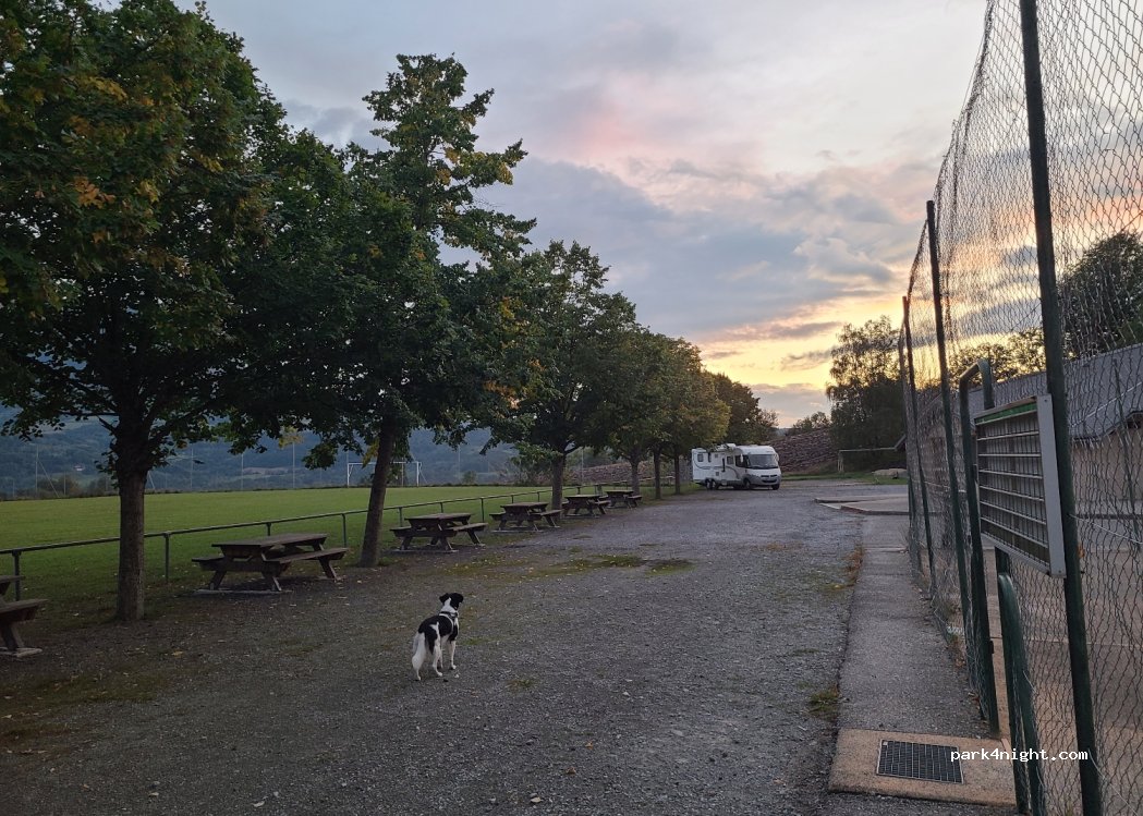 Très bon emplacement pour camping car, grand parc de jeux pour enfants, grand espace d’herbe. Très bien pour une nuit d’étape
