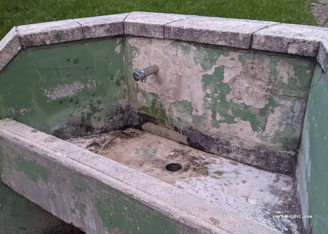 Parking proche une air de repos, de jeux et de pique nique. Située en contre bas d'une route peu passagère idéale pour y passer la nuit mais également proche d'une école et d'une cantine, sûrement pas l'idéal pour la journée... Nous y avons trouvé un point d'eau en libre accès piéton ainsi qu'un WC ouvert (vestiaire de foot a proximité). Pas de barrière hauteur / ok camping car long
