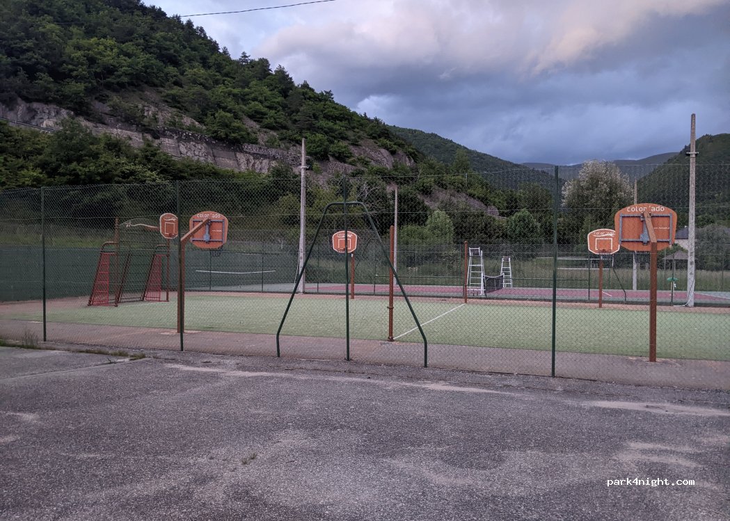 Nuit tranquille avec vue totale sur le massif du Dévoluy. Tables de camping à dispo. A proximité immédiate d'une belle aire de jeux pour enfants ou city park.